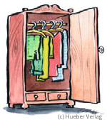 A: Wo ist denn meine Hose? B: Die _________ im Schrank.